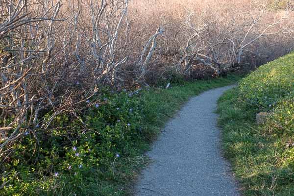 Our day started with blooming daffs - and our exit path from the beach features little purple periwinkles. Flowers popping everywhere!