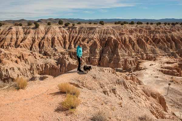 The Team inspects Cathedral Gorge's upper viewpoint.