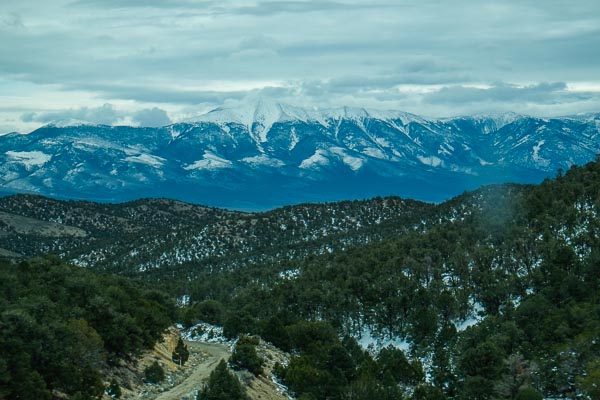 Our shortcut into Kanab involves a run over a 9900ft pass on UT 14 out of Cedar City. We hit the snowline almost right away.