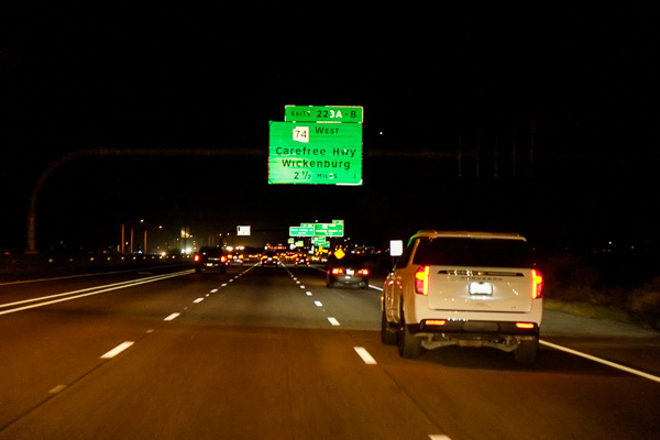 It's a late return - but the food shopping extravaganza to Lee Lee and AJ's is a ripping success. Russ is now following his "bait fish" truck who is conveniently marking the way down the dark interstate.