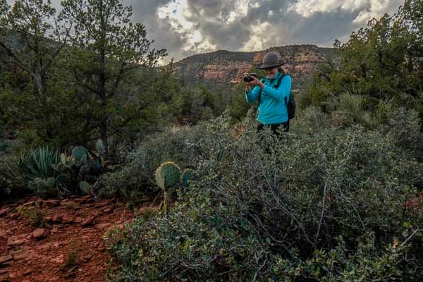 The Team inspects the World-Famous Hillary Stoop for a safe way down.