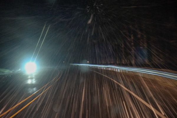 We make the trek for dinner to Cannon Beach at the Pelican. En route back all heck breaks lose! Yes - that is snow. Yes it is April and this is the Oregon Coast. Almost feels like a "this can't be happening" scenario.