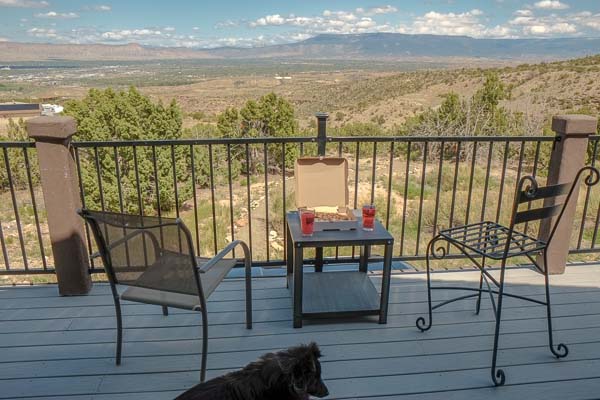 Our raid into town has yielded the usual prize: pizza. Pablo's Pizza.