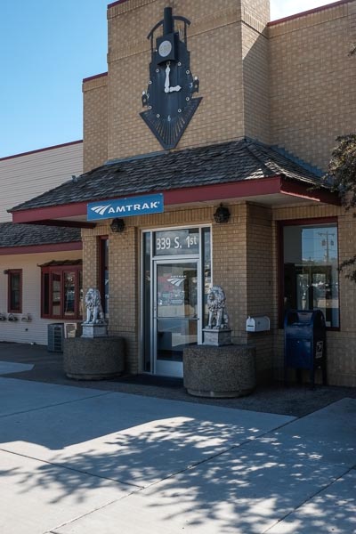 Apparently this is the "live" Amtrak station - but no one seen coming or going. The stone lions in front are somewhat of a mystery. We think they were stolen from Matt and Shannon's front gate back in Vancouver.