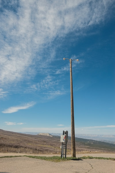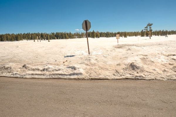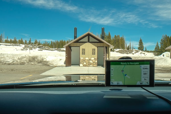 The Renewed Topographics: Land's End Exit, May 2022. My Original Big Idea was: drive a crazy dirt road of switchbacks called "Land's End" to reach the top of Grand Mesa, the biggest flat-top mountain in the world. This is the top of Land's End - completely snowed in.