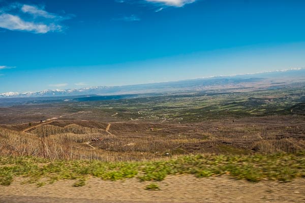 The minute we turn off I 70 and onto the Grand Mesa Scenic By Way - we're greeted by massive canyon walls and deep green farmlands.