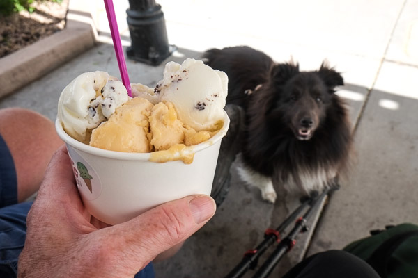 That layer of grey haze is wind blown dust. Winds today were steady at 25mph and gusted up to 50mph. Also gave us a good reason to stay close to base, eat pizza and ice cream - and stroll the town.