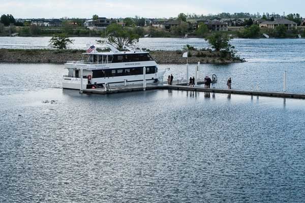 All lined up for their 3 hour tour. Actually it was under 3 hours! Not sure how they pull off cruising to a winery, a dinner and return - all in 2 1/2 hours. Not sure I want that experience!