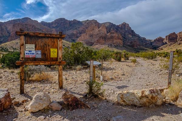 Cave Spring Trailhead, complete with The Rules and Regulations. Being BLM, there are practically no Rules and Regulations. They want you to take water. No motorized vehicles. That's about it.
