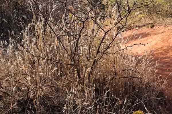 Trailside grasses catch the bold afternoon light.