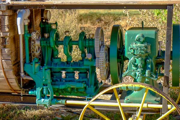 It appears this horse-drawn cart has an internal-combustion engine water pump on it. If that really was its purpose. We think it was used to pump that black goo from the UFO crash site halfway up the canyon.
