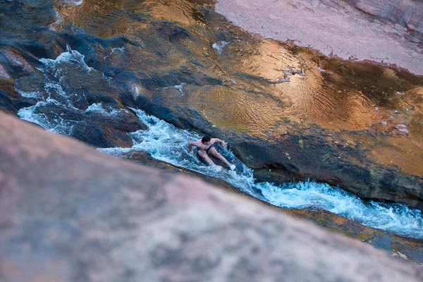 The top of Slide Rock. New players are working up the chutzpah to actually slide.