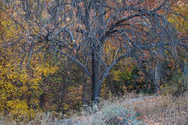 This tree has dropped all it's leaves - but still stands out in the crowd with it's silvery structure.