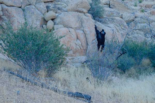 Nope, it's not a man dressed in black with a hoodie climbing a rock. Have a closer look. A very close look.