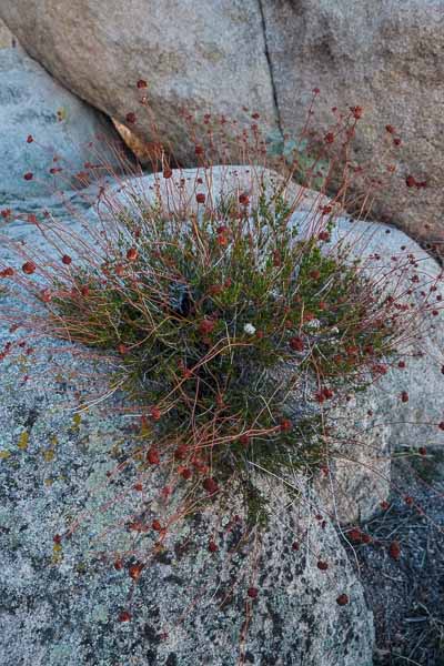 The red blooms on this plant are nearing their end - but still are striking against the grey rocks.