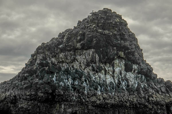 The massif of Seal Rock, topped by a green patch and a seagull rookery - the seagulls are just visible along the ridgeline.