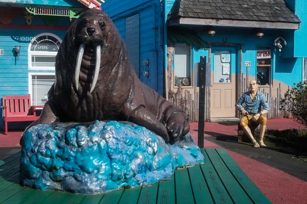 Don't climb on the walrus. Just don't do it. The permanent retired pirate stationed here will pull out his trusty lazer sword - and you never want to be in the path of that weapon. He will first warn you with a wink of his evil eye. Wait - he always has a wink in his evil eye.