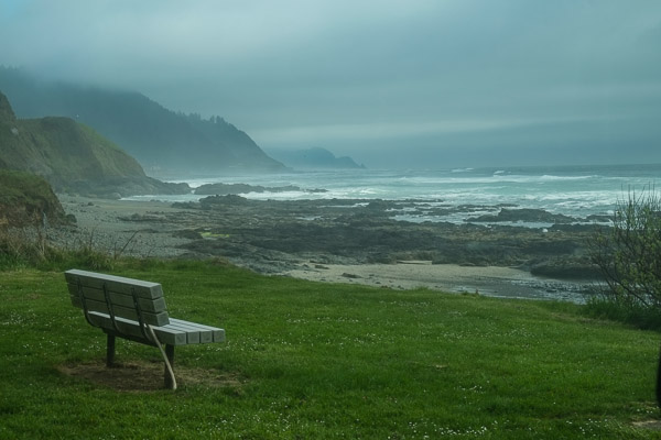 Such a lonely bench. We stopped here to enjoy our coffees from River Roasters in Florence. We took the easy route and stayed in the comfort of the vehicle - just too wet and windy. We wouldn't want the wonderful coffees to get cold!