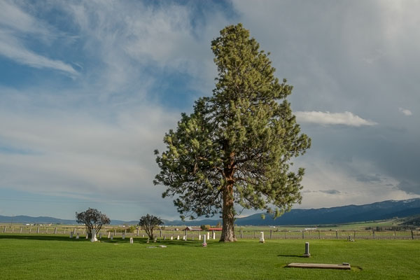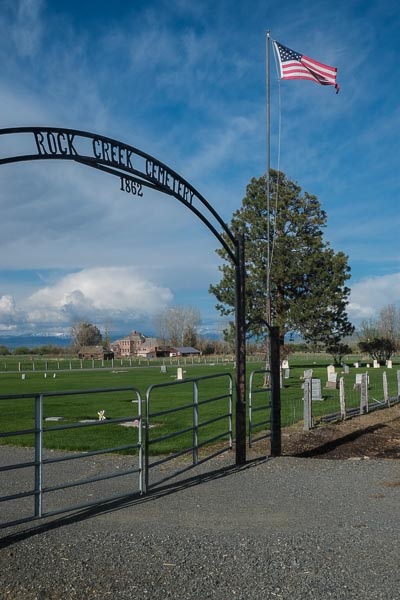The Rock Creek Schoolhouse and outbuildings viewed from the Cemetery.
