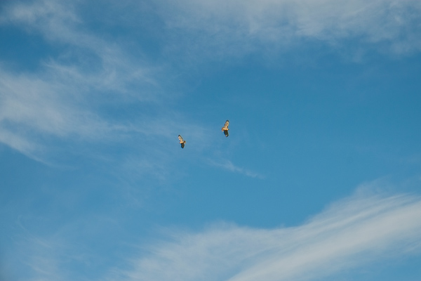 Dunno what these birds are, but they really don't like each other. This was an air-to-air pass worthy of Top Gun.