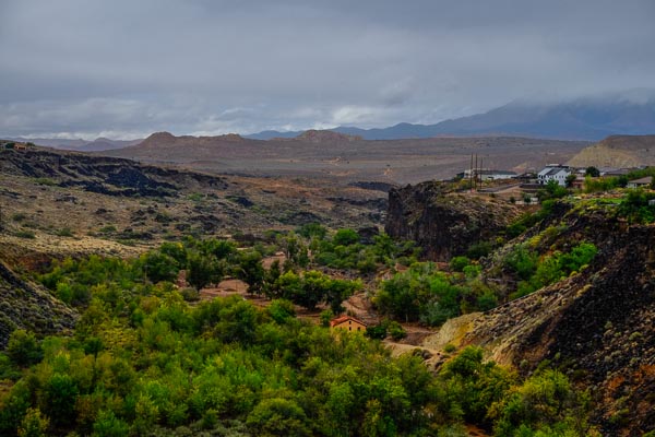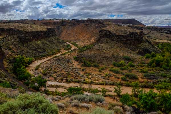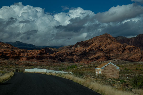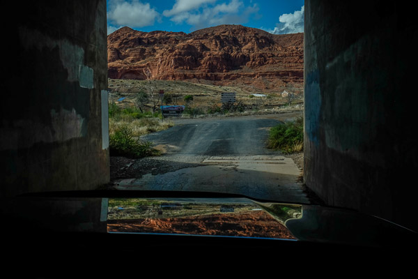The Virgin River runs past the patio, too. It is high today, and swollen with the carcasses of Jeeps that have tried to brave the flash floods and failed.