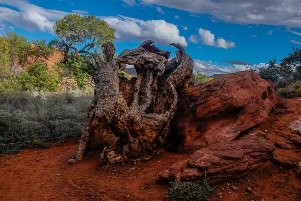 The secret passage to the Red Reef trails. All who enter must pass and answer a skill testing question before access is granted.