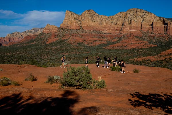 The women in black congregate at the Yavapai viewing platform. Apparently dance steps are part of their ritual. Meantime another cluster are seriously inspecting the plant matter. It's all a conundrum - but highly suspicious behaviour.