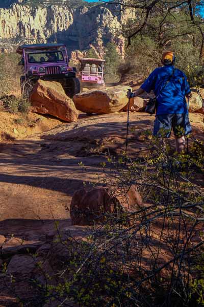 Russ carries on - leaving the pink jeeps in his dust.