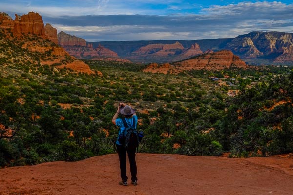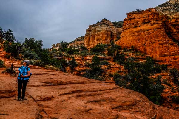 Wendy keeps a nervous eye out for the Black Helicopters. We are a little exposed today at Chimney Rock Pass.