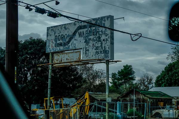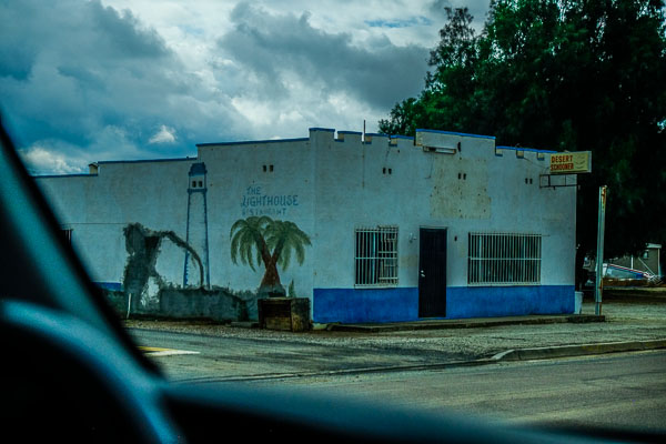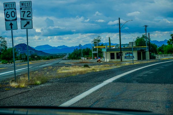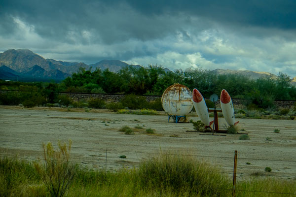 The thoughtful folks of Bouse AZ have kindly provided a nicely sheltered porta potty in their roadside rest stop. As well as the tank display and military memorials.