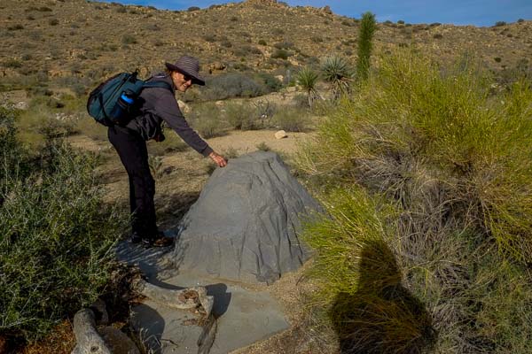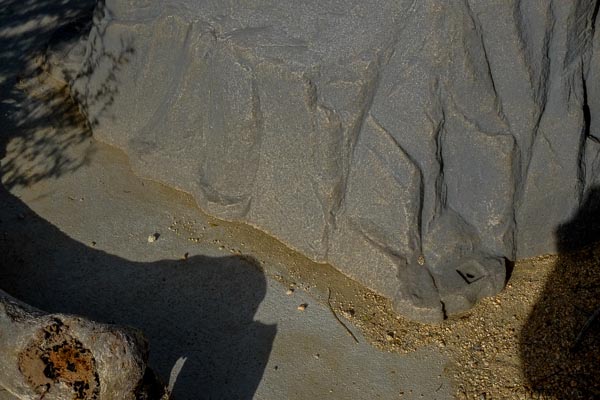The Fake Rock. It is made of some kind of very tough material, clearly designed to withstand the heat and stress of atmospheric re-entry. Note the machined bolt-hole, where the original landing mechanism was attached. We note the park rangers give this thing a wide birth. It also makes that low thrumming sound. We are starting to wonder if the "flood" story for this trail is some kind of coverup.