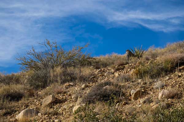 The seldom seen desert chicken - in full mating regalia - on his command post.