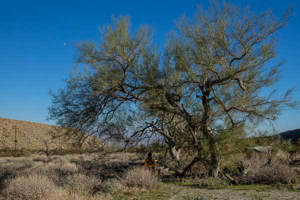 Russ takes a rest under moonrise in one of the limited shady spots.