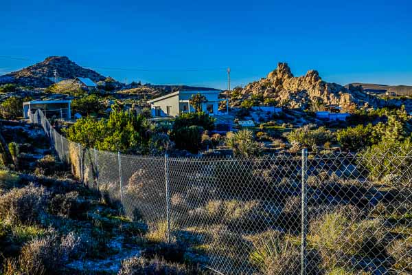 That's our hut in the desert, surrounded by an electrified fence to keep out the Giant Lizards.