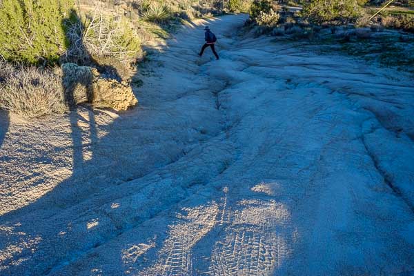 Wendy scales the approach road. It is tricky even in 4WD.