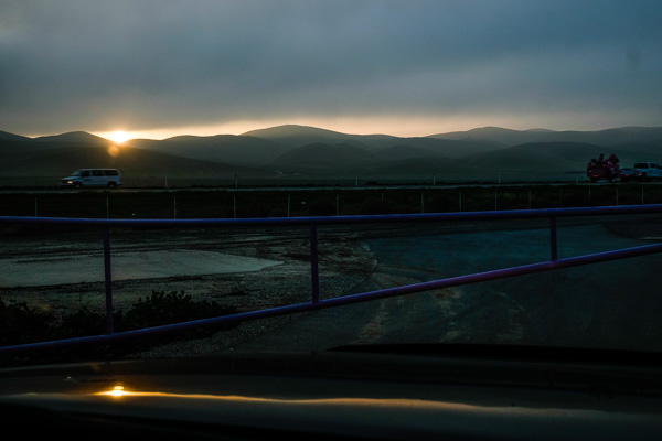 The fog lifts - we're almost in town - what a colourful treat we receive.