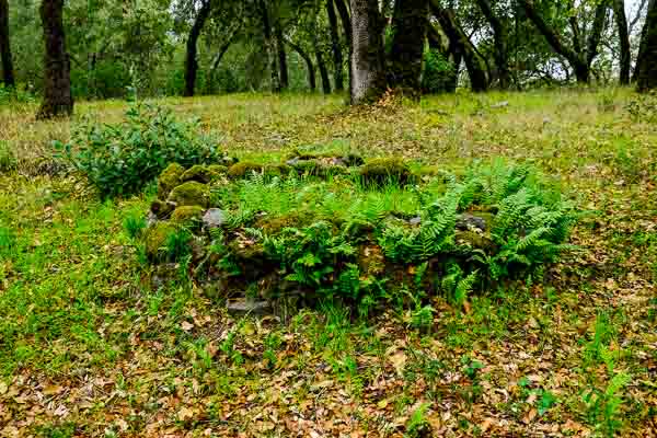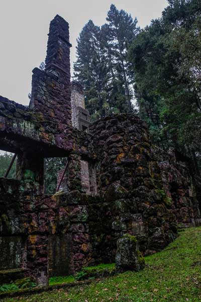 Jack London's gravesite near the Wolf House ruin. His wife Charmian and sister's ashes are also scattered here.