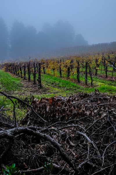 Fog over Beauty Ranch vineyards.