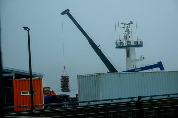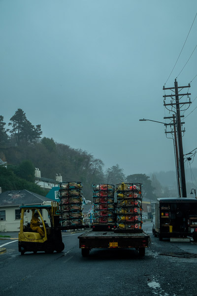 Crab season is imminent. The dock is abuzz with the loadout of pots.