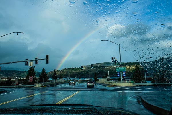 Things are looking up as we depart a quick coffee stop in Hood River.