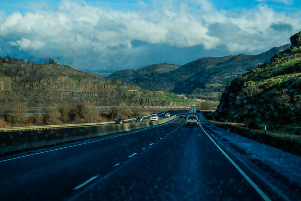 Driving east up the Columbia Gorge on I 84. Whew!! At least the conditions have calmed significantly. Nothing worse than massive trucks going by on the opposite side of the road and engulfing your vehicle with a massive rooster tail. Fingers crossed for the calm to continue.
