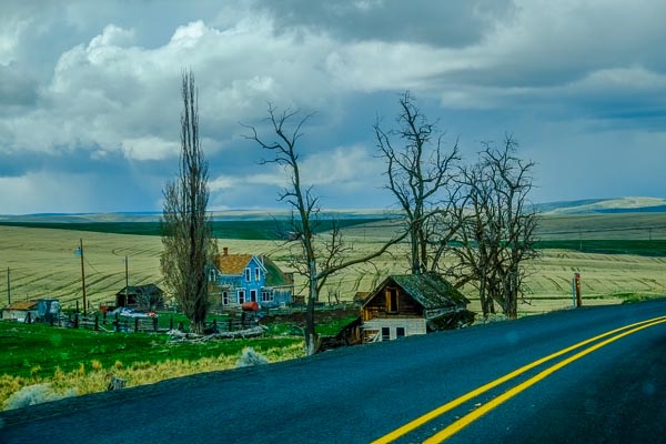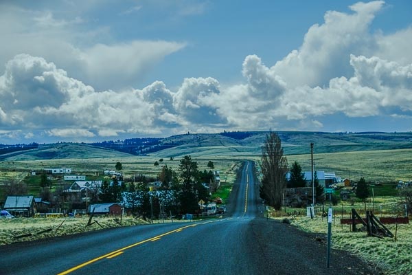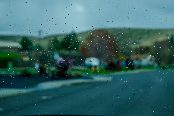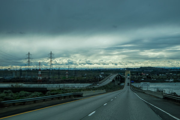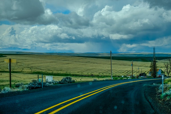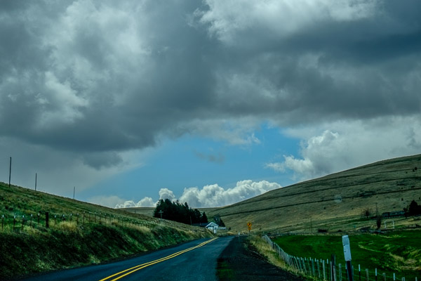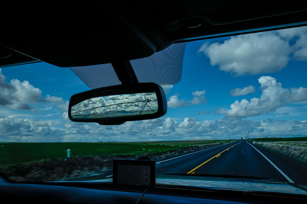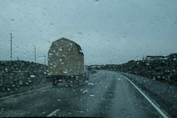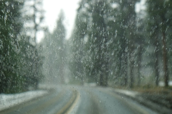 The descent from the Ochoco Pass throws hail and slush into our path.