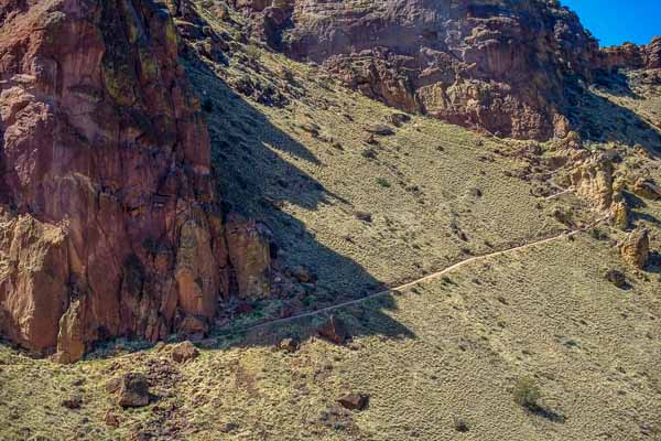 The carefully and presciently named Misery Trail. It goes up and up and up in a straight line until the five million switchbacks. We were able to hike this trail in our misspent youth, with Emma Brown Sock. Look closely, and you will see some of Les Miserables.