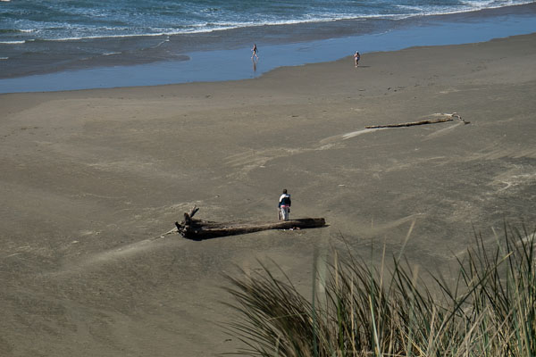 Yes indeed - as I stand here in 3 layers of clothing - the wind howling to a point where it's hard to make a photo without being knocked over - these two women in the distance are in bathers and headed for the Pacific. Lead bather really did go for an actual swim. It was short.Bather 2 I believe was the stand by spotter. They made a hasty exit when the excitement was over. Yikes - they didn't even bring towels with them!!!