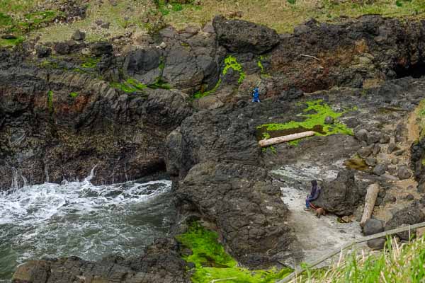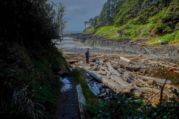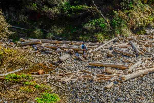 The Team navigates the Giant Logjam to get down to Perpetua Cove.