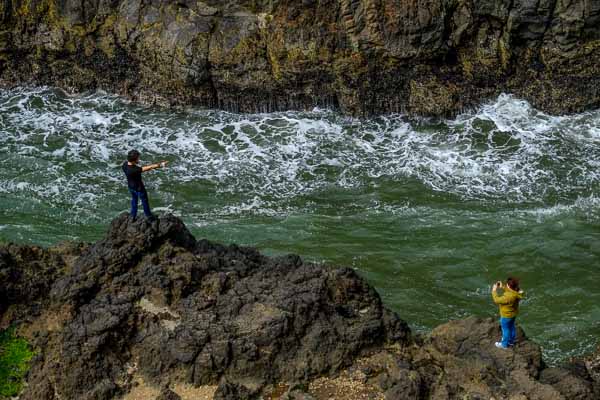 Meanwhile, the local influencers are one-upping each other by being artfully swept off the rocks on live stream.