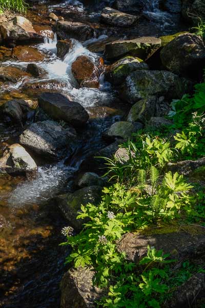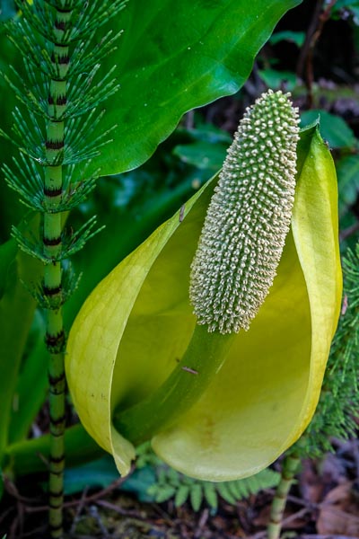 Skunk cabbage is right at home next to frsh horsetail ferns.