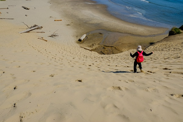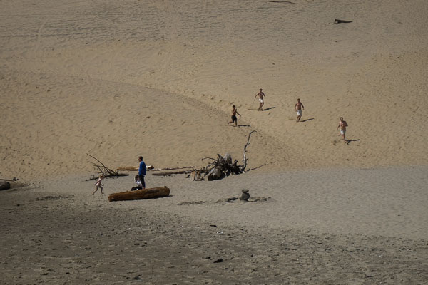 The kids escape up the dune. The parents are trying to at least make it to the halfway wheeze.