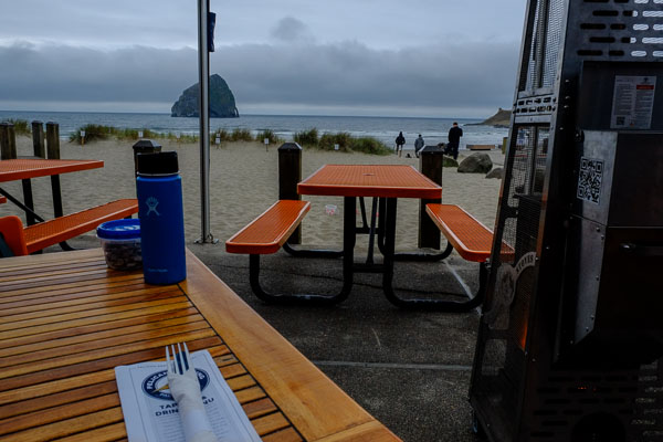One of the Kiwanda famous "dory boats. This one is captained by two local fishermen whose daily catch can be found in the local grocery stores. They call themselves West Fish Co. We bought one of their delicious crabs from Chester's Market. mmmmmmm - crab cakes.