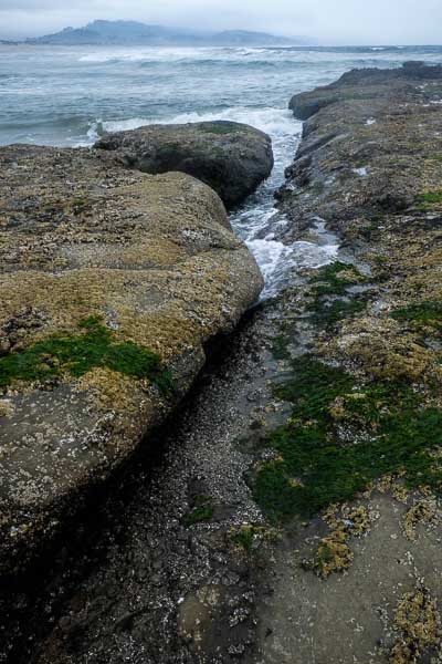 Lovely gooey slathered rocks await the quickly incoming tide.
